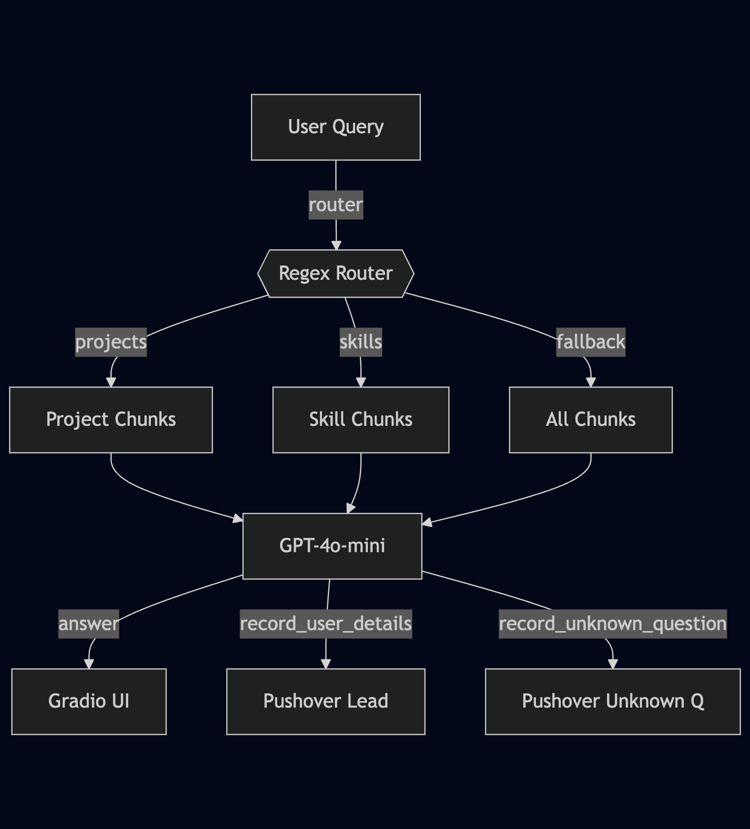 projects,skills, etc.) - calls GPT-4o-mini using OpenAI function calling